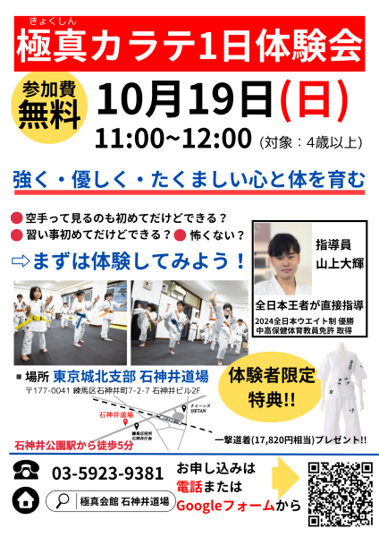 10月19日(日)11:00~12:00 石神井道場 無料体験会開催